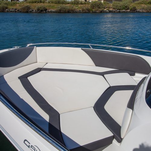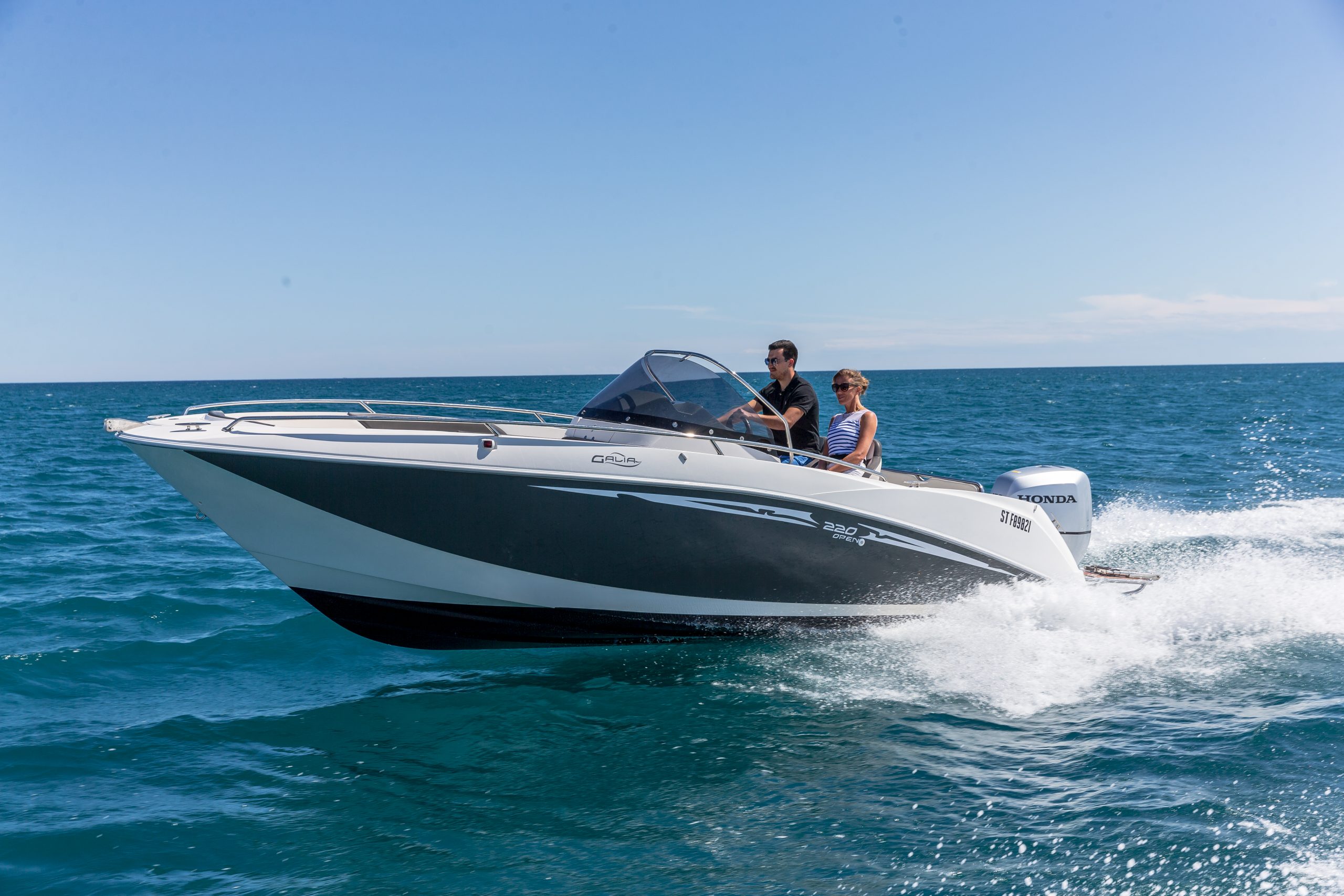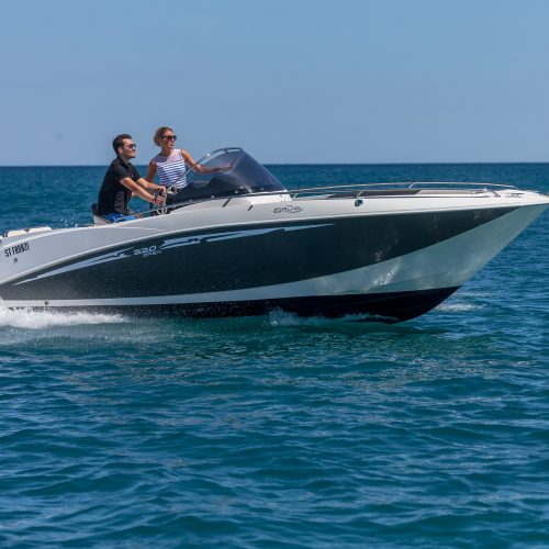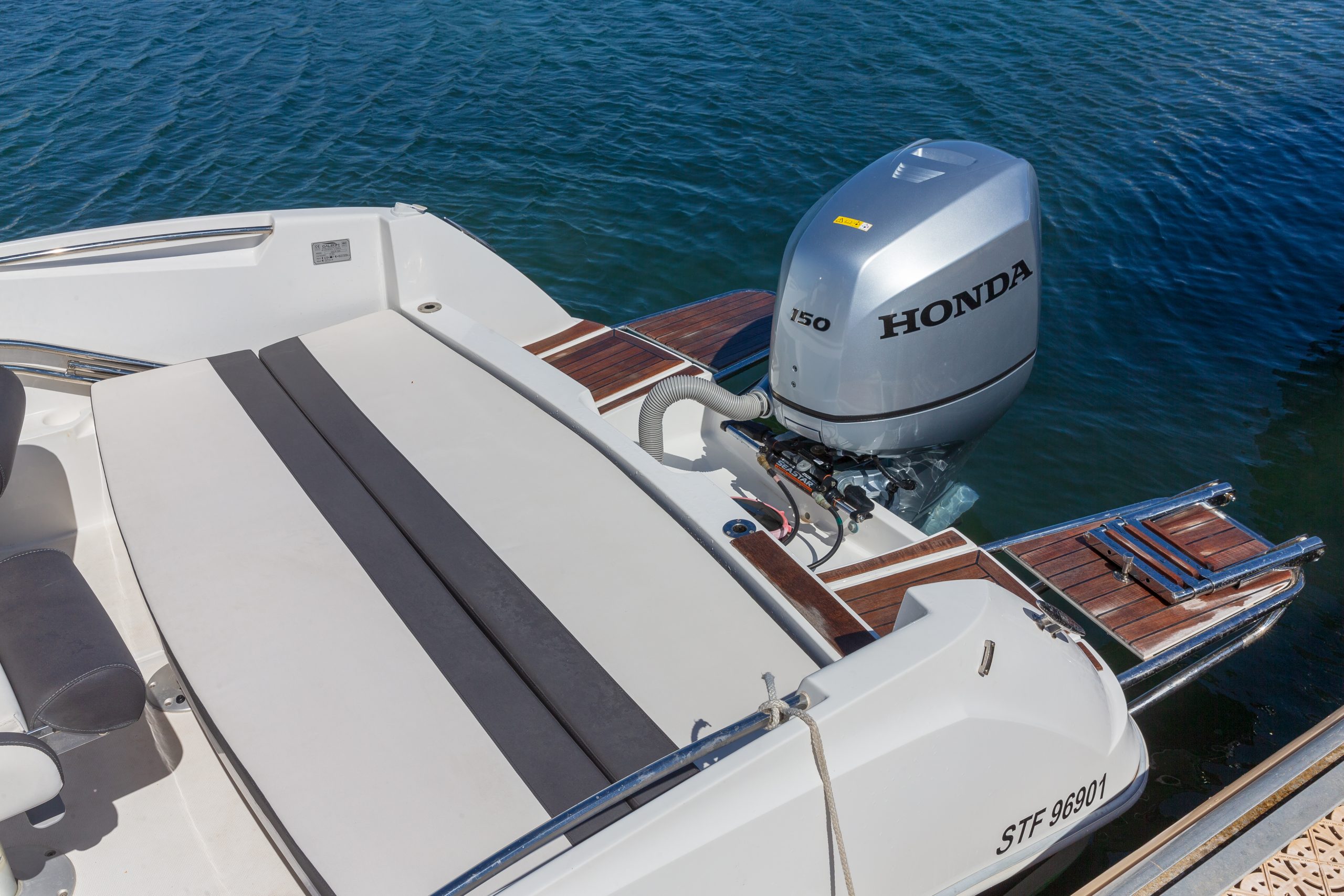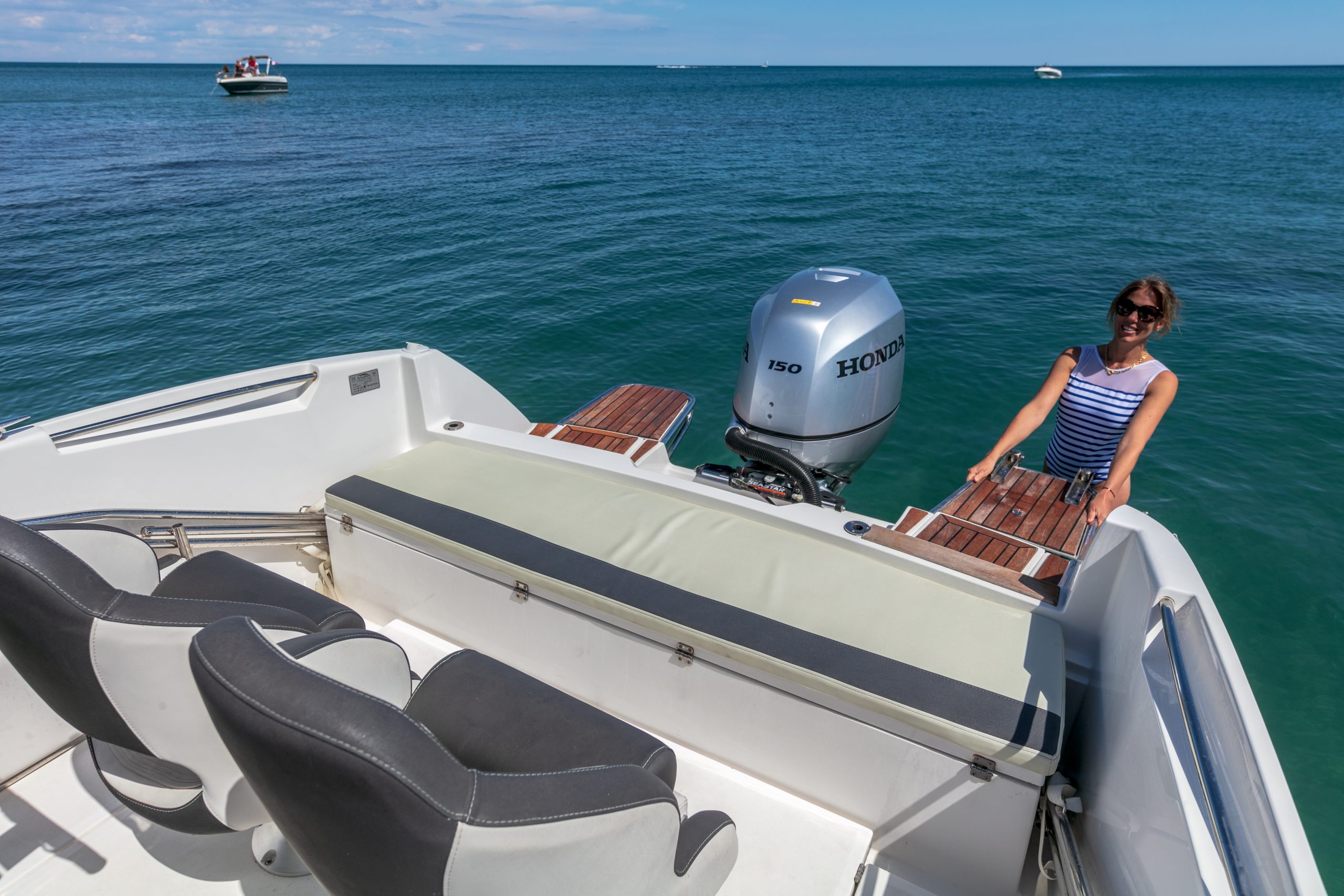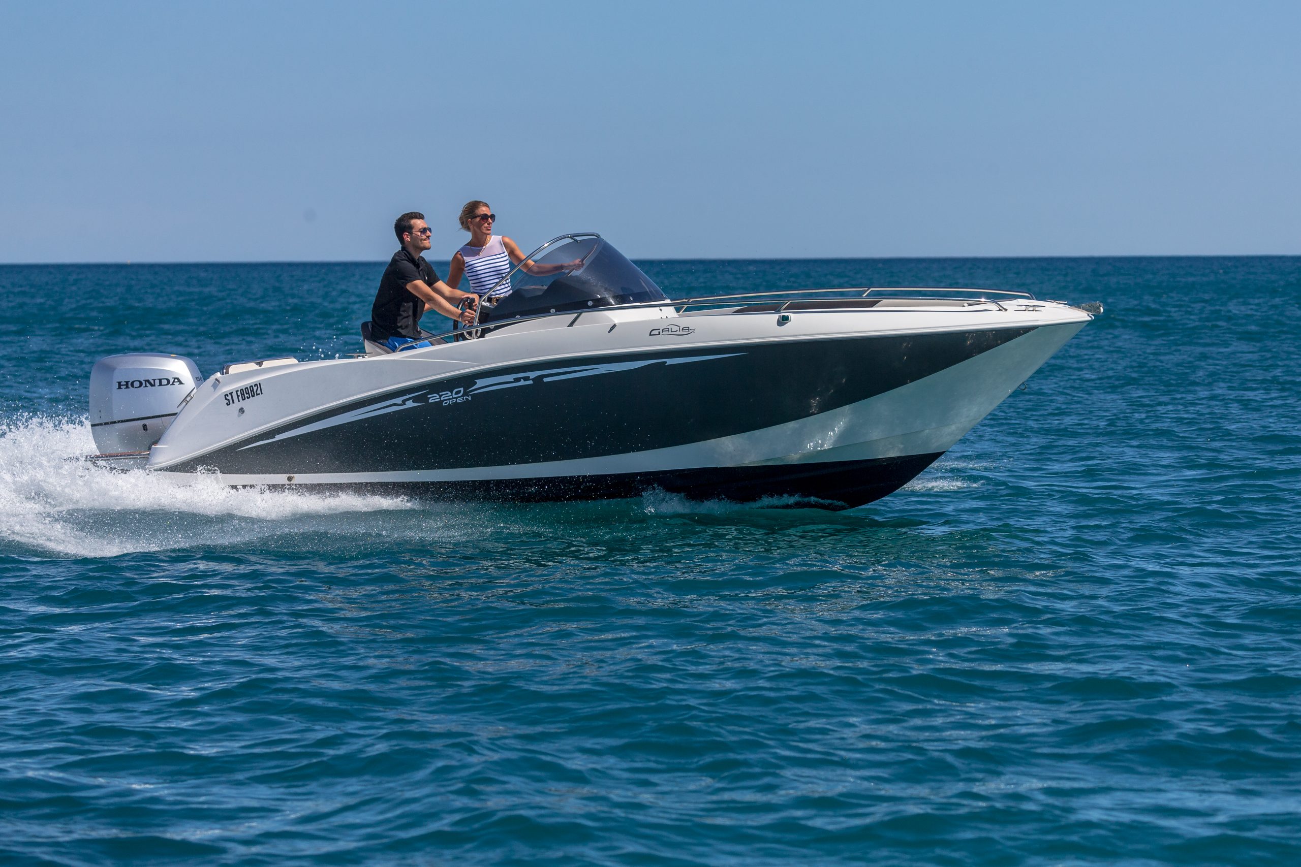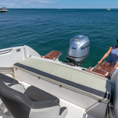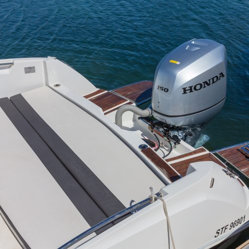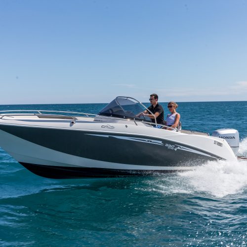 LONGUEUR HT : 6,70 M / LONGUEUR COQUE : 6,19 M / LARGEUR : 2,48 M / POIDS : 1150 KG / NOMBRE DE PERSONNES : 8 / PUISSANCE MAXIMUM : 200 CV