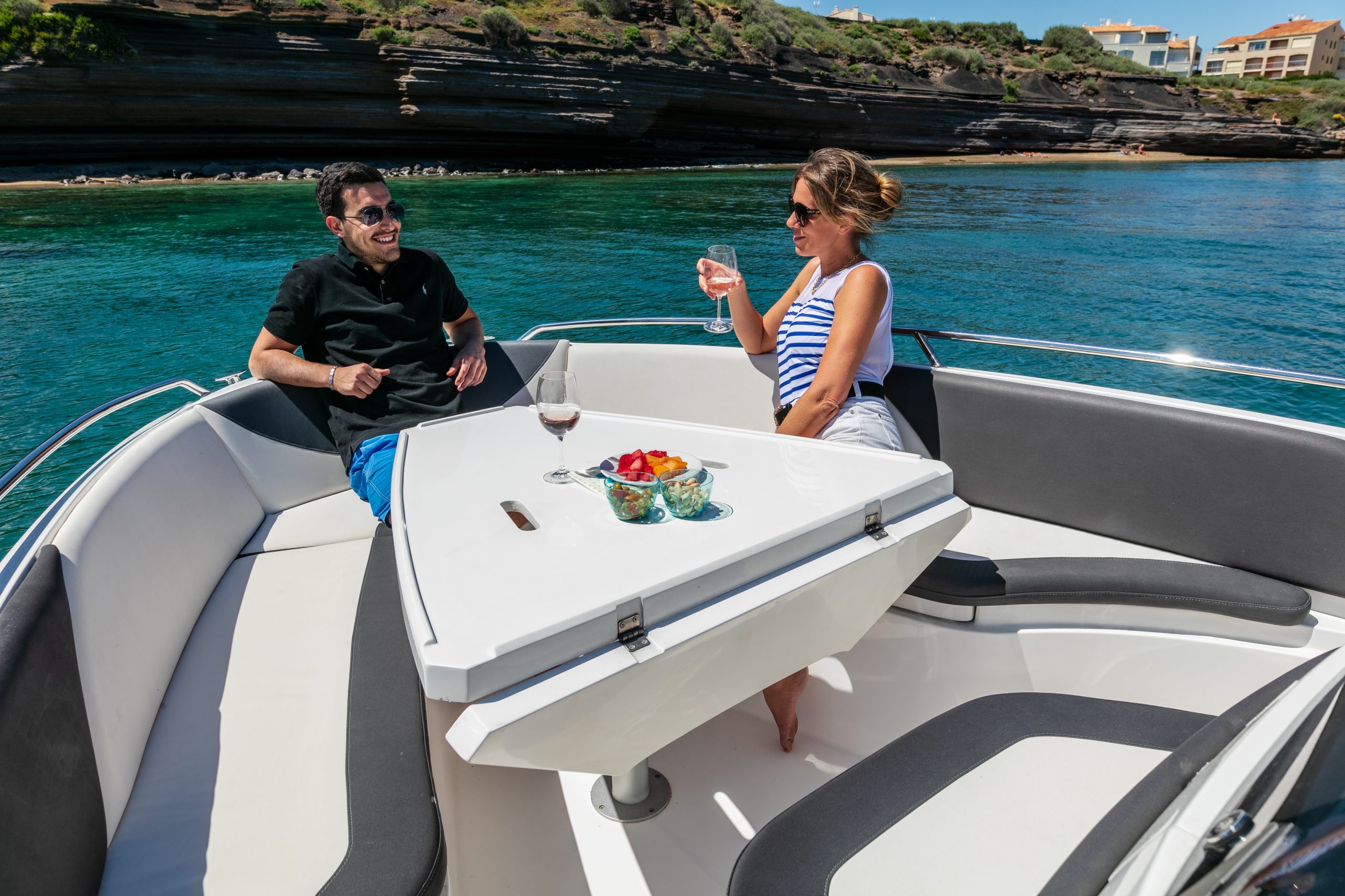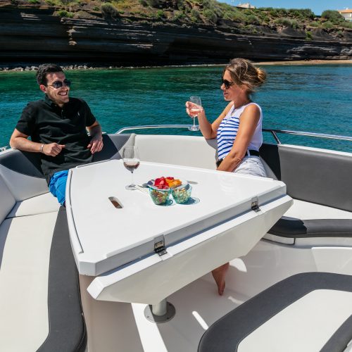 • Grand bain de soleil avant convertible en carré dinette